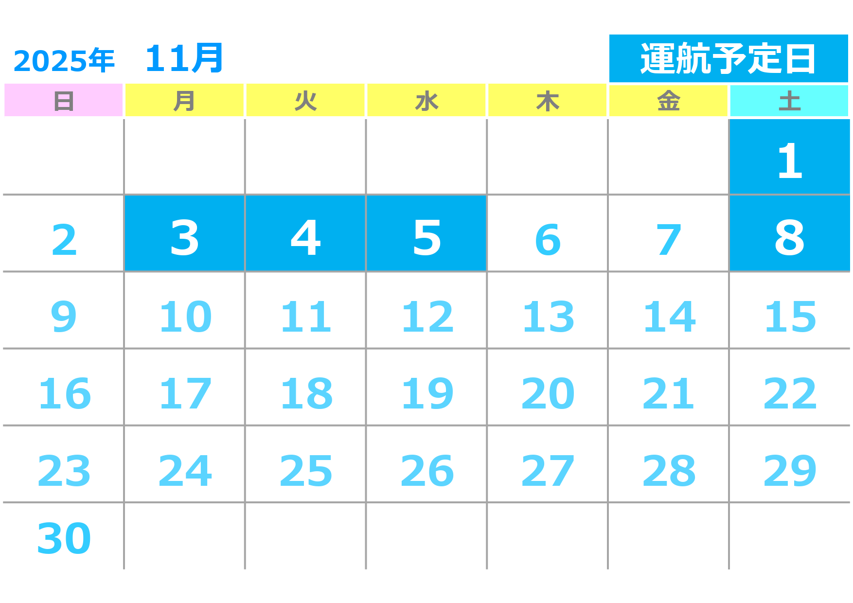 ※運航予定日および運休日の変更がある場合は、決まり次第早急にお知らせします。